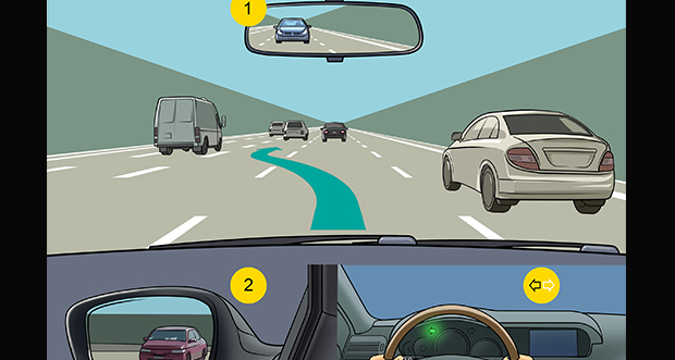 Which of these is the proper signal to change lane. 6- Change the lane. Check your rear view and side mirrors for.