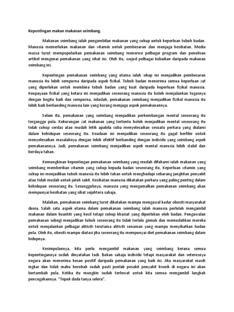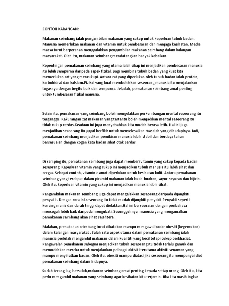 Contoh Karangan Pemakanan Seimbang